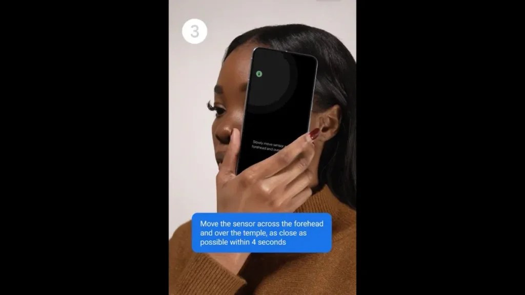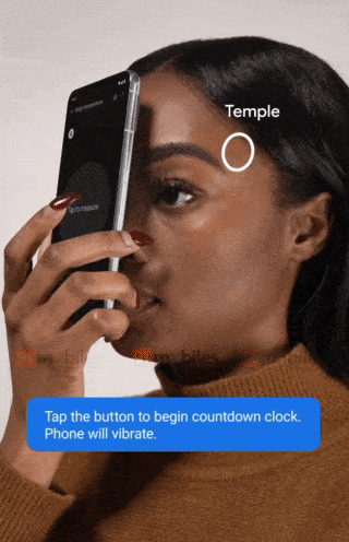 Find the white sensor first, then check to see whether there are any accessories on your skin or forehead. The sensor on the Pixel 8 Pro must then be placed as close to your forehead as possible without touching your skin. During five seconds, you may hit the start button and move the phone near your temple. The phone will vibrate when your temperature is taken, and you may see it.