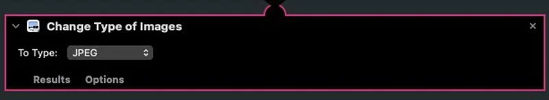 - Select the type of format to which you wish to convert images in the Change Type of Images action window. We’re going with JPG.