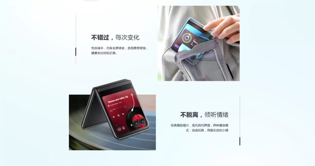 The 6.9-inch LTPO AMOLED screen on the Razr 40 has FHD+ resolution as well, although it has a somewhat slower refresh rate of 144Hz. The cover screen’s 1.5-inch (194 x 368 pixel) size allows it to serve as both a viewfinder for the cameras and a simple notification manager.