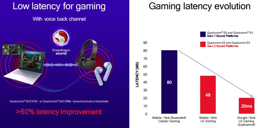 The same devices can be used for calls and ultra-premium music listening, but this new platform has been tailored to give an ultra-low latency experience for gaming over Bluetooth with Snapdragon Sound.